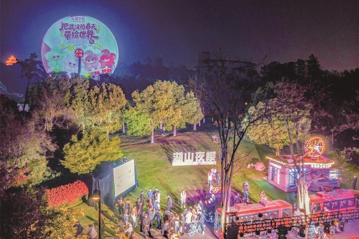 Photo taken on March 27, 2026 shows a lighting ceremony in front of the East Lake Eye Ferris Wheel, which marks the opening of a series of events celebrating the 10th anniversary of the East Lake Greenway. From the first phase project of 28.7kilometers in 2016 to the completion of its third phase in 2024, the East Lake Greenway has now formed a 105-km closed loop, becoming the longest lake-ring greenway within a national 5A-level scenic area in China. Over the past decade, it has received a total of more than 150 million visits.