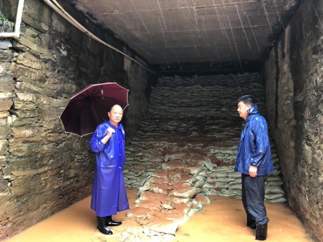 近日,武汉市普降暴雨,防汛排涝形势严峻,全市启动二级响应。7月7日,按黄陂区民生堤防汛指挥部要求,市生态环境局黄陂区分局工会负责人王戟(右一)参加值守,巡查府河民生堤,确保汛期安全。