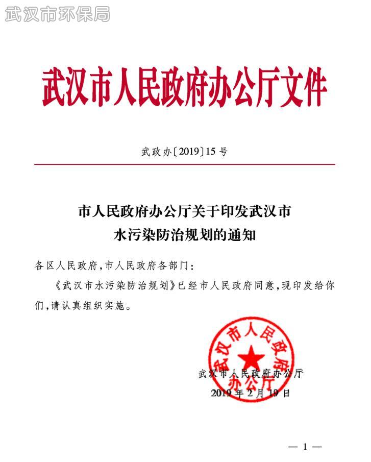 武政办[2019]15号 市人民政府办公厅关于印发武汉市水污染防治规划的通知