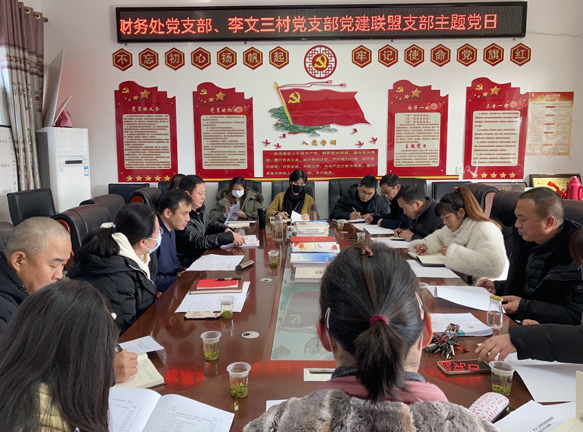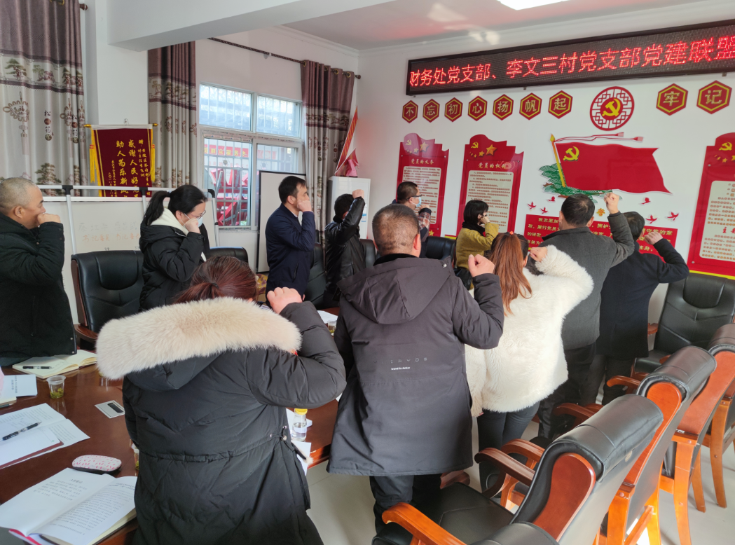 财务处党支部、李文三村党支部党员集体重温了入党誓词;集中学习了习近平总书记对“三农”工作的重要指示精神和中央农村工作会议精神、市委办公厅关于选派驻村第一书记和工作队的通知等文件。