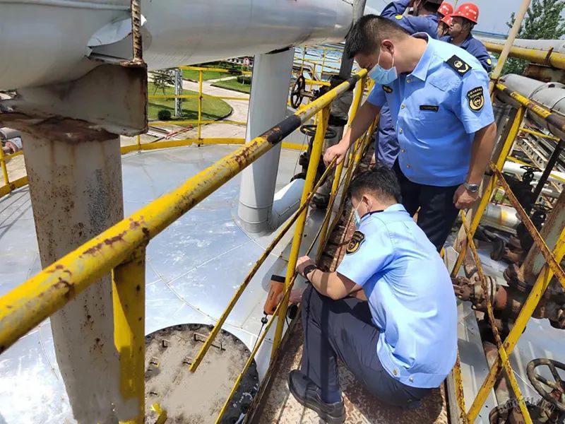 “可以通过油槽补氮管道增加压力检测和调节进行自动补氮,从而实现各储槽压力自动调节,减少槽内废气排放量。”克服高温酷暑,生态环境执法人员使用红外气体泄漏检测仪和FID检测仪,认真检测企业罐区和设施是否存在VOCs泄漏问题。针对前期个别储罐存在呼吸阀泄露检测值较高的情况,此次“回头看”逐一进行复检,同时与企业一道,对预备启动的整改项目即储罐自动氮封控制项目进行效果和方案讨论。