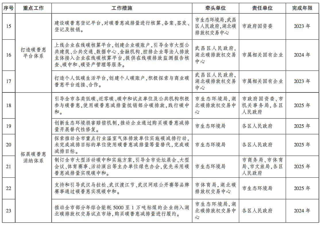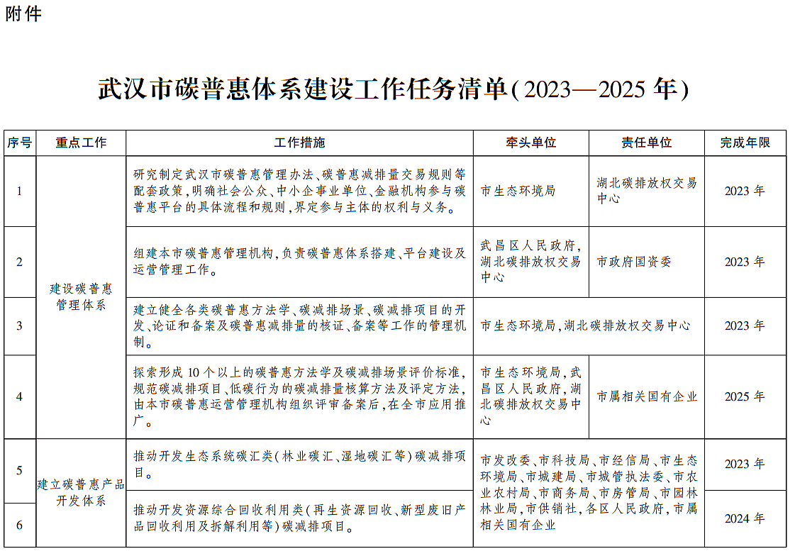 附件:武汉市碳普惠体系建设工作任务清单(2023—2025年)