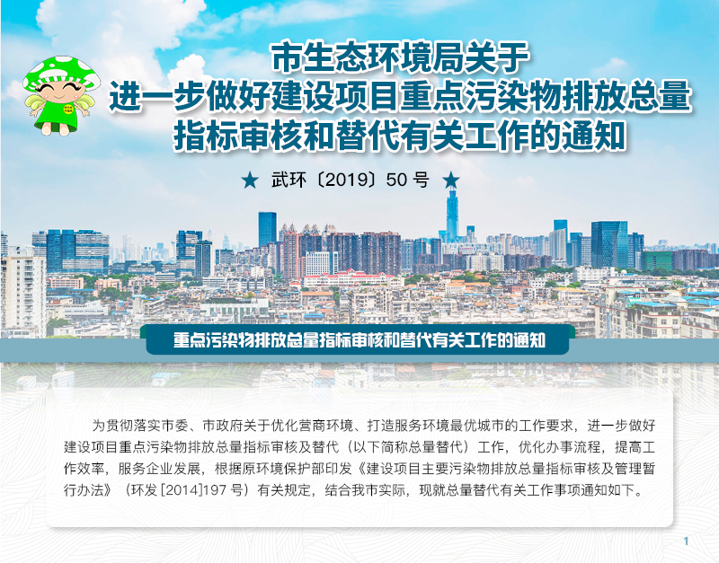 武环〔2019〕50号 市生态环境局关于进一步做好建设项目重点污染物排放总量指标审核和替代有关工作的通知