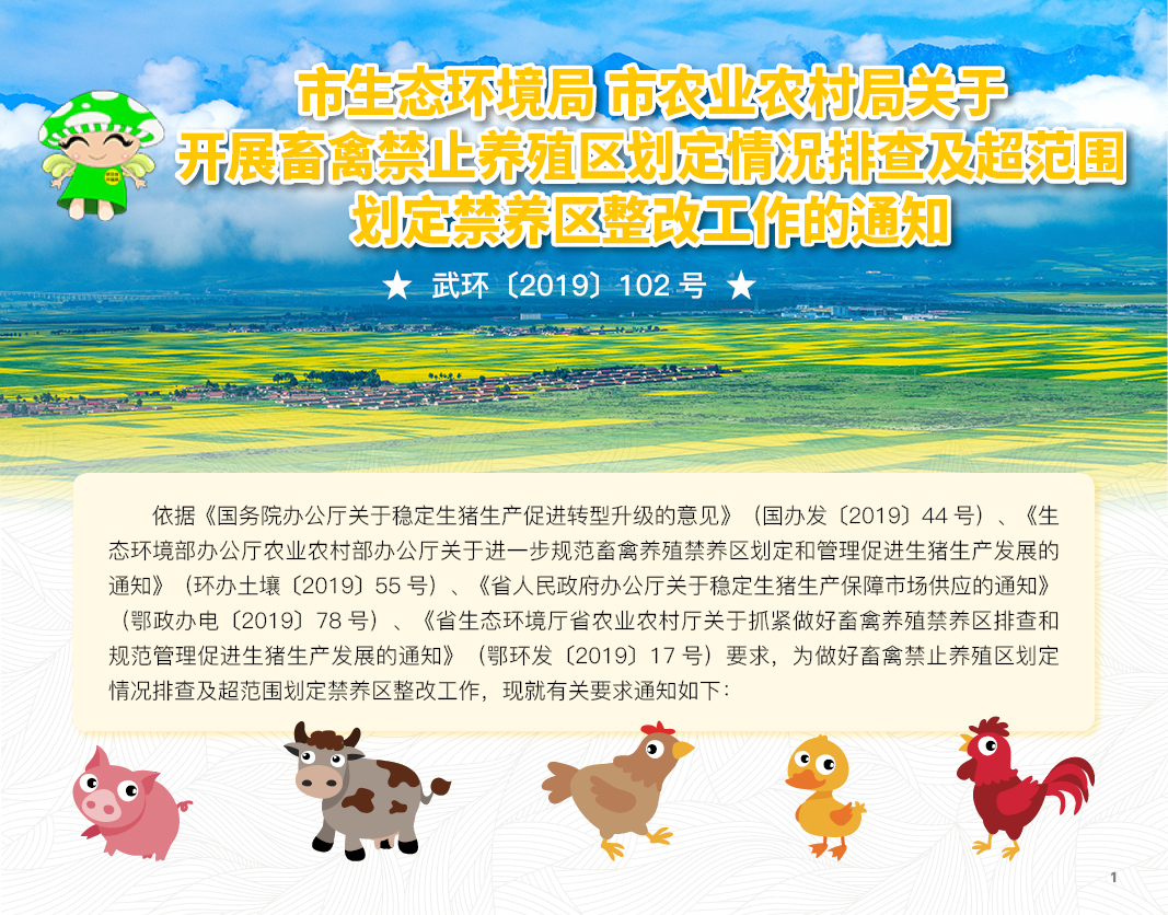 武环〔2019〕102号 市生态环境局 市农业农村局关于开展畜禽禁止养殖区划定情况排查及超范围划定禁养区整改工作的通知