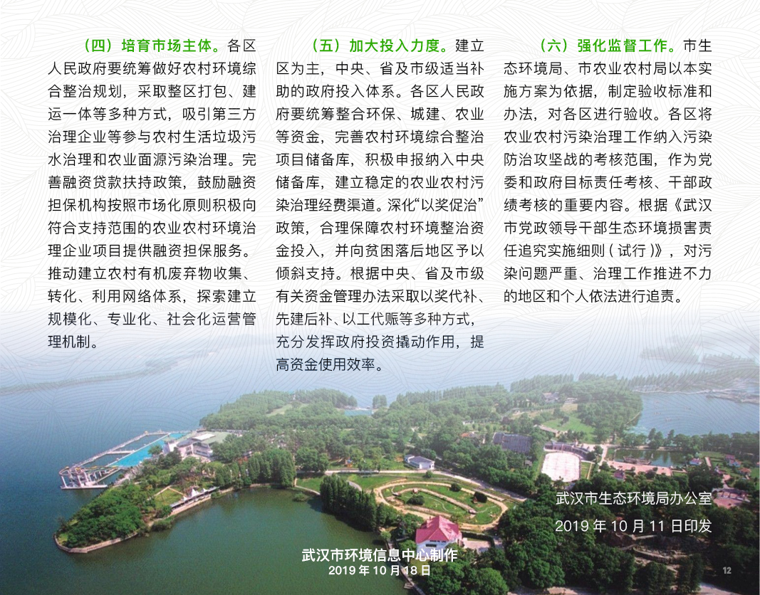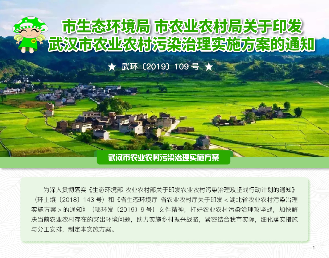 武环〔2019〕109号 市生态环境局 市农业农村局关于印发武汉市农业农村污染治理实施方案的通知
