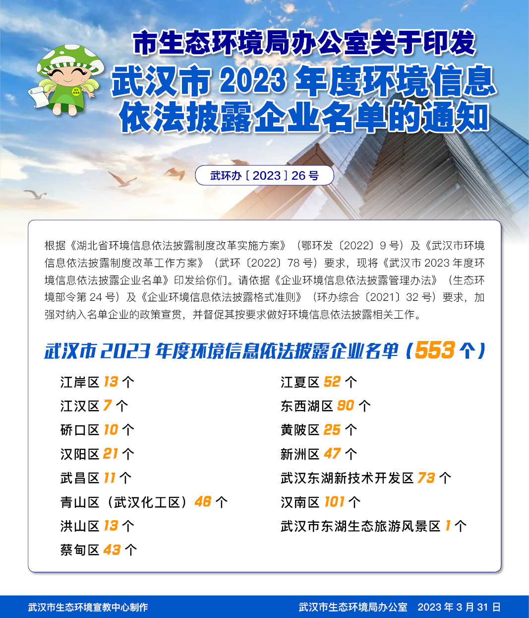 图解:武环办〔2023〕26号 市生态环境局办公室关于印发武汉市2023年度环境信息依法披露企业名单的通知