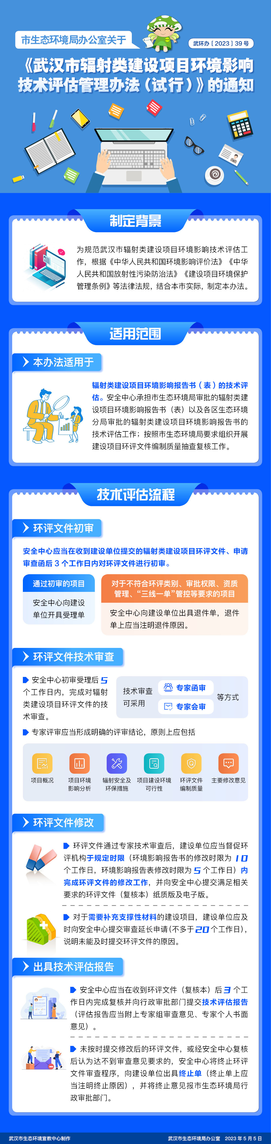 图解:武环办〔2023〕39号 市生态环境局办公室关于印发《武汉市辐射类建设项目环境影响技术评估管理办法(试行)》的通知