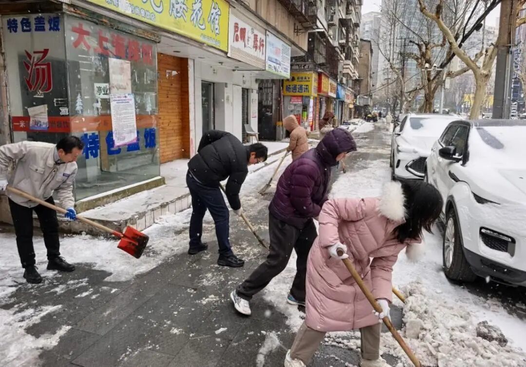 2026年1月20日凌晨,武汉市出现新年首场降雪,导致道路积雪结冰,影响居民出行安全。接到市委市直机关工委“以雪为令、闻雪而动”的倡议后,市生态环境局迅速响应,第一时间安排部署“党员干部突击队”,下沉结对共建的环保社区开展扫雪除冰工作,以实干担当筑牢民生保障防线,让党旗在一线高高飘扬。