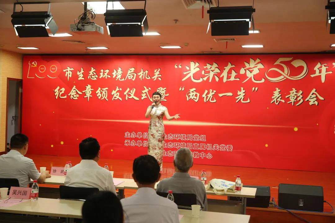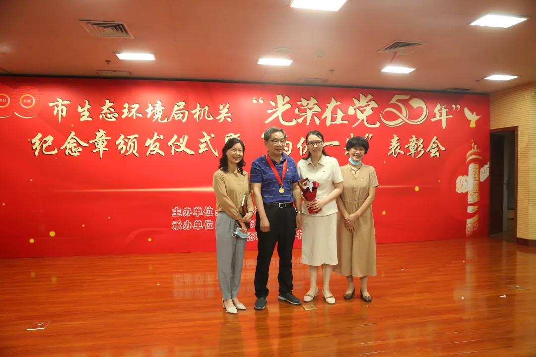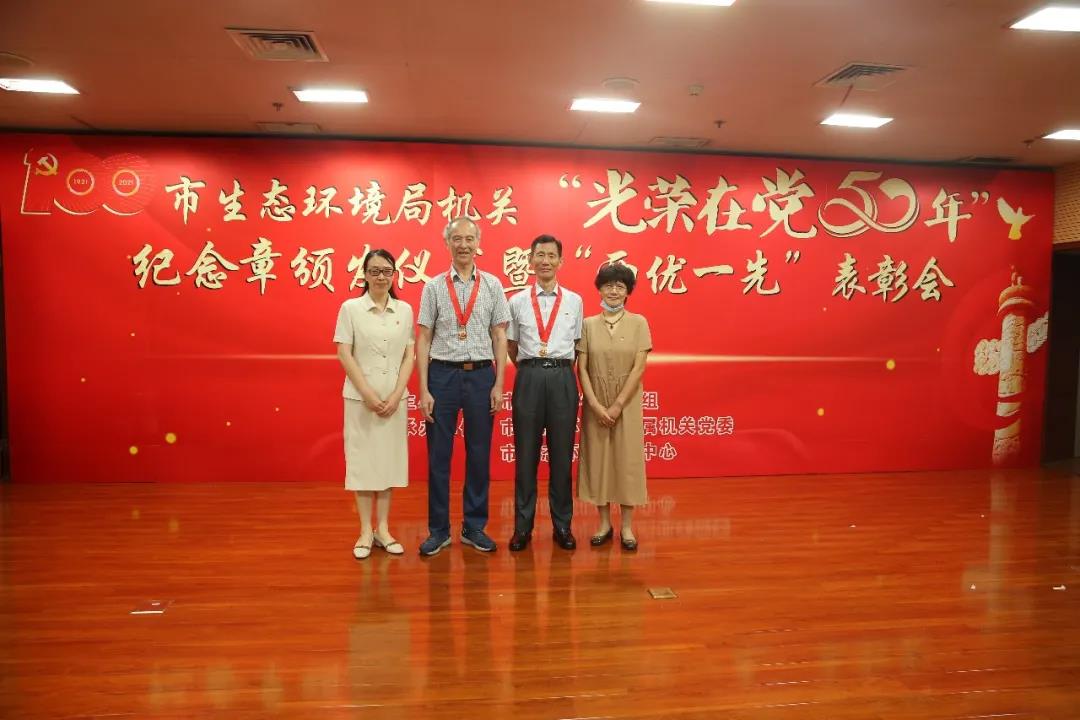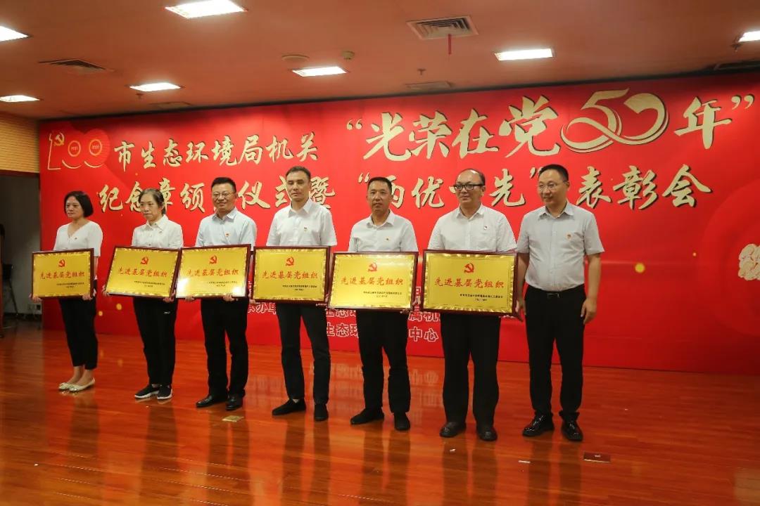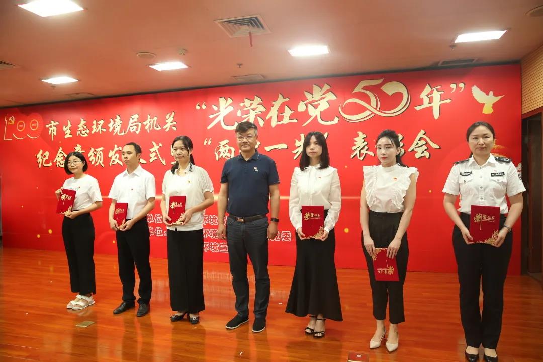 6月29日,在中国共产党百年华诞即将到来之际,武汉市生态环境局举行“光荣在党50年”纪念章颁发仪式暨“两优一先”表彰会议,为党龄满50年的党员颁发“光荣在党50年”纪念章,表彰局机关优秀共产党员、优秀党务工作者和先进基层党组织,庆祝即将到来的伟大的中国共产党的百岁生日。