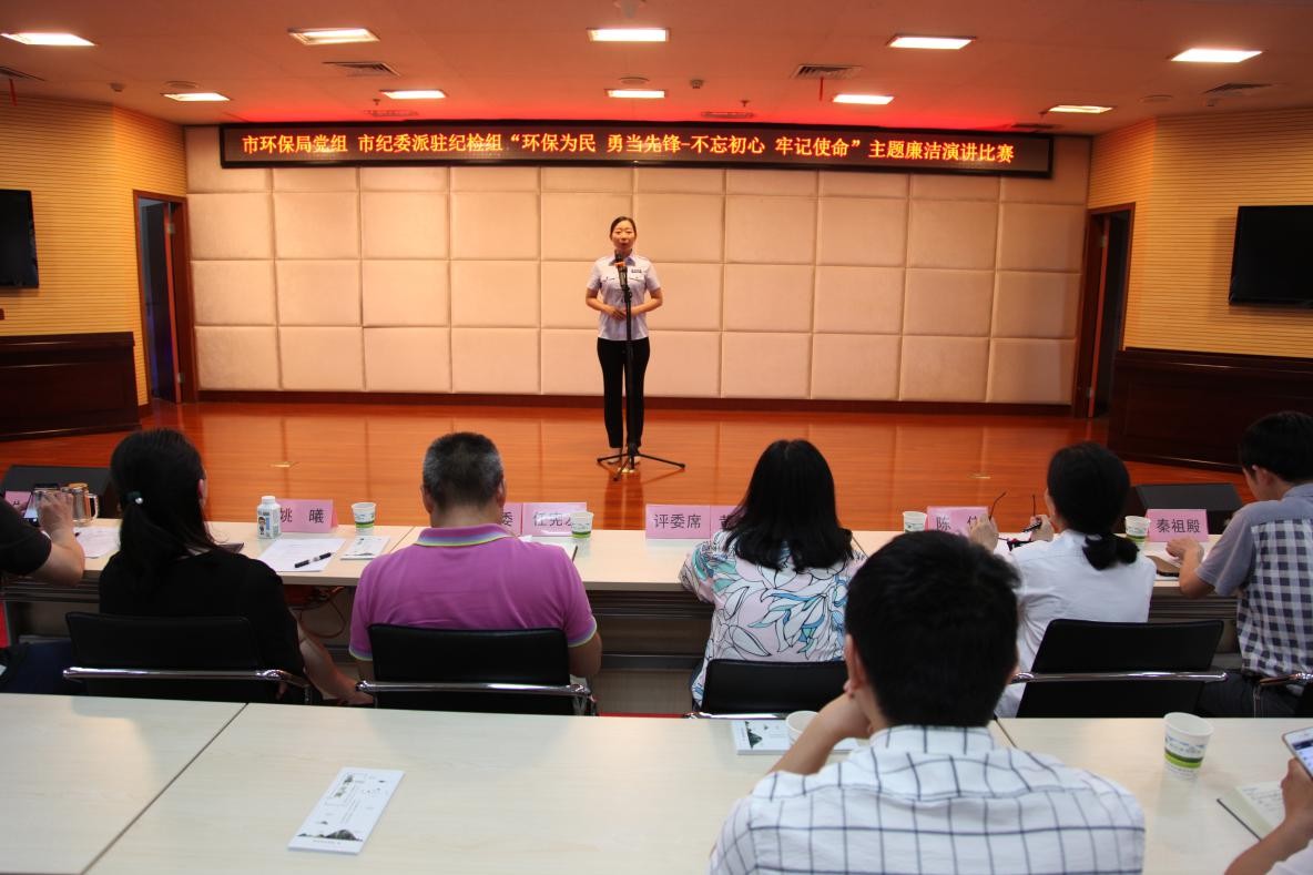 为推进“环保为民 勇当先锋”党建品牌创建、落实我市第十九个党风廉政建设宣教月相关部署,5月24日下午,由市环保局党组与市纪委派驻市政协机关纪检组联合举办、市环保局直属机关党委承办的“环保为民 勇当先锋——不忘初心、牢记使命”主题廉洁演讲比赛隆重举行。