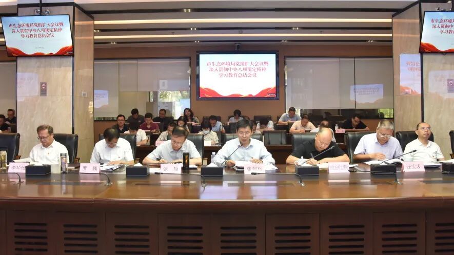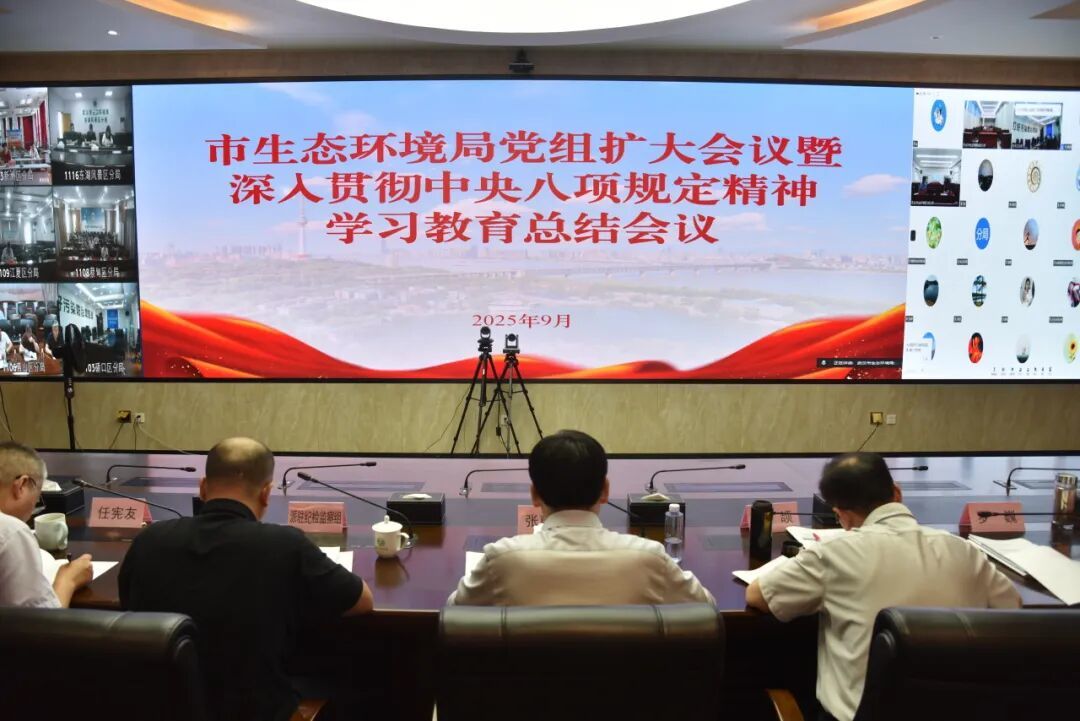 9月15日上午,市生态环境局召开党组(扩大)会议暨深入贯彻中央八项规定精神学习教育总结会议,传达学习习近平总书记关于学习教育的重要指示精神,贯彻落实中央党的建设工作领导小组会议和省委、市委、省生态环境厅党组有关会议精神,对市生态环境局学习教育进行总结,深化运用学习经验,巩固拓展学习教育成果,推动作风建设常态化长效化,为打造全国生态环境保护新高地提供坚强作风保障。局党组书记、局长张朝辉主持会议并作总结讲话。