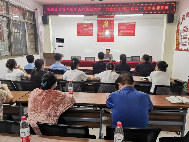 为加强学习交流,丰富主题党日活动形式,6月23日,新洲区分局机关党支部落实《区直机关工委关于六月份支部主题党日的通知》《新洲区关于开展党员干部下基层察民情解民忧暖民心实践活动的工作方案》有关要求,将主题党日活动从会议室“搬进”社区,与邾城街祥燕社区党委联合开展支部党日活动,进一步提升党支部的凝聚力和战斗力,逐步形成党旗红引领生态绿、生态绿托起党旗红交相辉映的工作新局面。局机关党支部书记陶水应以《党员干部要上好理想信念和初心使命必修课》为题,为社区40余名党员代表上了一堂生动的主题党课。
