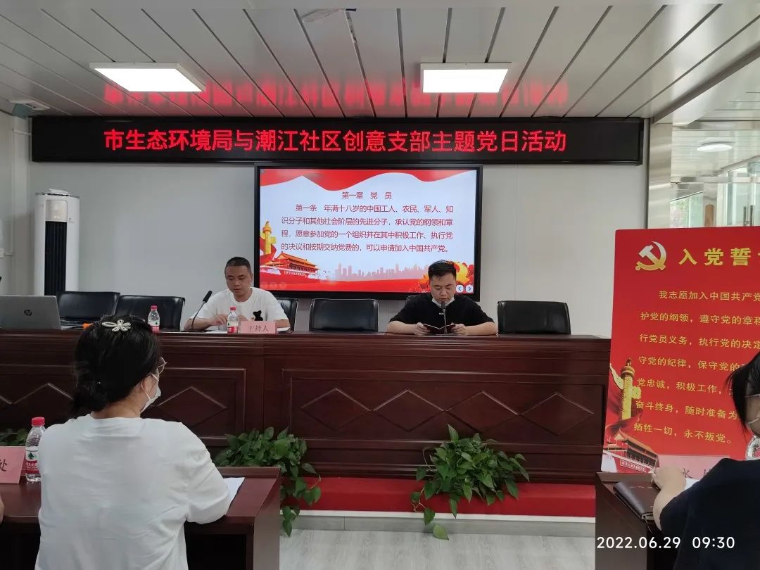 市生态环境局水生态环境处、大气环境处、土壤生态环境处、科技监测处、组织人事处、直属机关党委、市生态环境科技中心、潮江社区的党员代表参加了活动。