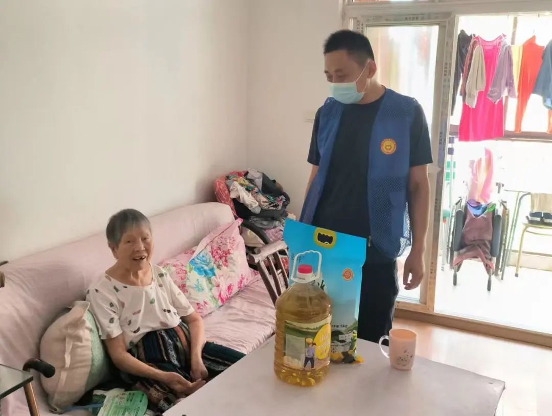 市生态环境局党员代表、社区工作人员携带物资上门慰问困难群众。