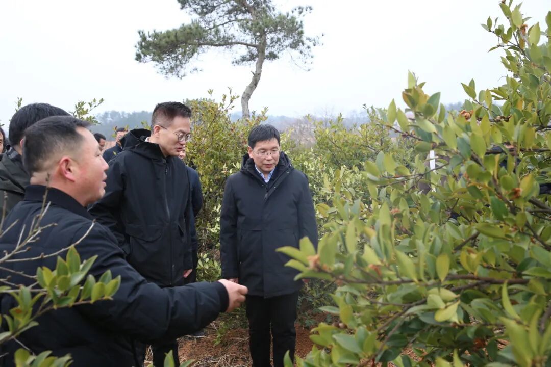 在村油茶种植基地,张朝辉一行仔细查看了新建成并投入使用的喷灌设施运行情况。看到喷灌系统有序作业,张朝辉强调,要管好、用好现有设施,加强油茶林的日常维护与科学管理,切实将油茶产业打造成为带动村集体增收、助力村民致富的支柱产业。