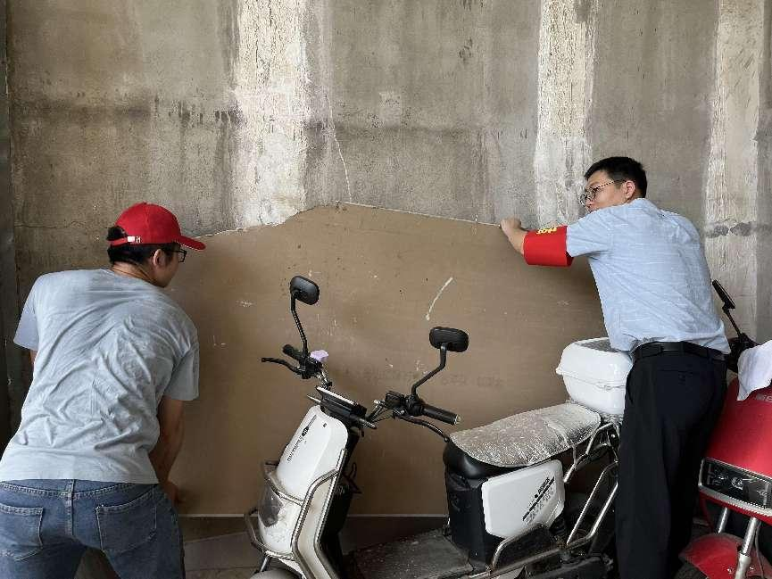 在分发完防暑降温物品后,中心党员立马投入到清洁家园活动中去。虽然酷暑难耐,但是汉城社区所辖汉城花园小区的两处消防应急通道堆放了大量居民丢弃的旧家具,废弃装修材料等,不仅不美观影响小区环境更造成消防安全隐患清理刻不容缓。中心党员对通道杂物进行了清理,行动同时对社区居民起到了警示教育作用,认识到居民楼防火工作的重要性,提高了小区居民自觉维护消防通道畅通的安全意识。充分展示了敢为人先,敢当重任的精神风貌。
