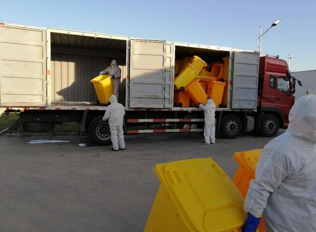 医疗垃圾太多,医废桶也很快告急。来到武汉之后,中油环保分三次采购了5000个医废桶,240升的大容量,齐腰高,一次性投放到武汉。医废桶是周转容器,清运车到医院,医疗垃圾不能从桶里倒出来,而是要直接将桶装载到车上,运到处理厂,卸载下来后消毒,再返还到医院。孙瑜介绍,“比如说,一家医院装载一天的医废量,需要500个桶,那我们就得备下1000个。这是额外投入,实际上平常用到的桶并不多。”