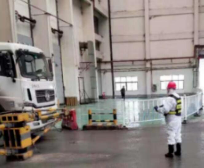 ▲卸料平台指挥着防护服、安全帽、口罩、手套等防护