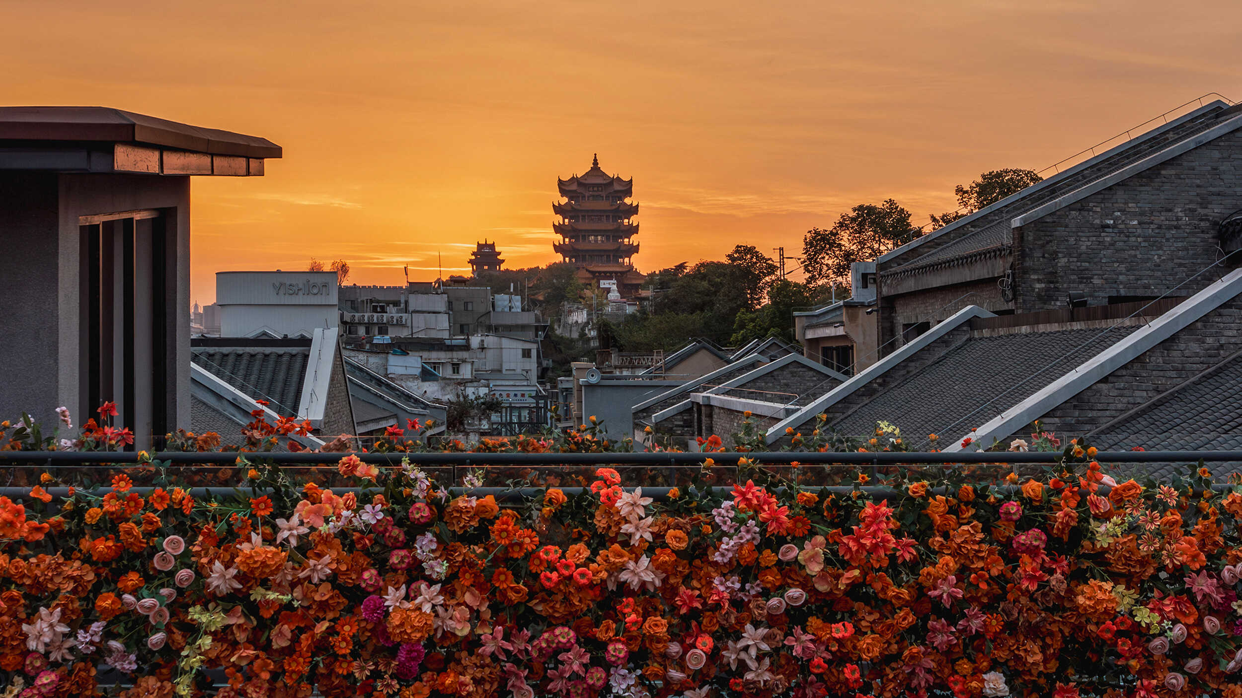 花墙与古楼的交融