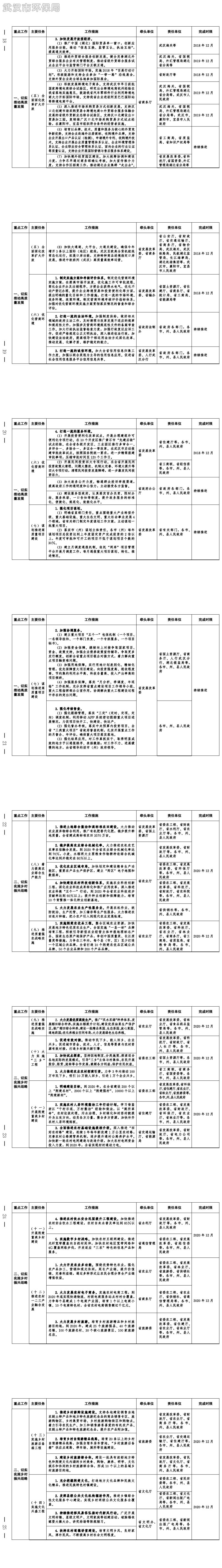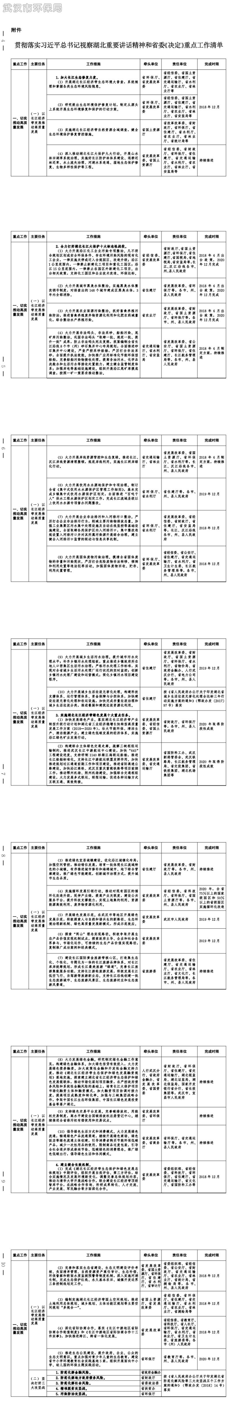 为全面贯彻落实习近平总书记视察湖北重要讲话精神,切实把习近平总书记的殷殷嘱托、殷切希望、重要要求转化为具体行动和实际成效,推动湖北各项工作再上新台阶,根据省委十一届三次全会和《中共湖北省委关于学习贯彻习近平总书记视察湖北重要讲话精神奋力谱写新时代湖北高质量发展新篇章的决定》(鄂发〔2018〕11号,以下简称《决定》)精神,省人民政府制定了《贯彻落实习近平总书记视察湖北重要讲话精神和省委〈决定〉重点工作清单》(以下简称《清单》,附后)。现将《清单》印发给你们,并就有关事项通知如下: