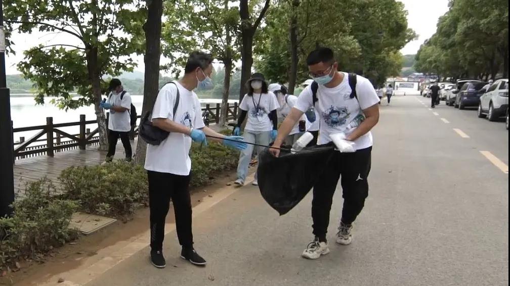 开展巡湖活动,清理河道边垃圾、向周边游客宣传水环境保护知识