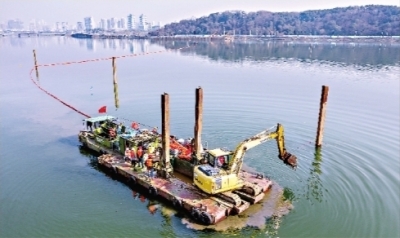 两湖隧道工程(南湖段)由武汉市城投集团公司建设,中交二航局施工。中交二航局技术中心副总经理、武汉两湖隧道南湖投资发展有限公司总工程师杨钊告诉记者,该工程将通过1569.8m长的围堰围出12000平方米的隔水带作为施工场地,对于湖中围堰的施工,建设方和施工方有共识,生态环境的保护是至关重要的。中交二航局以水工起家,作为“建桥国家队”,水上施工经验丰富。此前公司在武汉二环线东湖隧道工程中,曾采用双边围堰、在施工场地内设置截水沟沉淀池和排水管道,截留收集冲洗废水及施工泥浆污水等方式,避免对周边地下水环境造成污染。在两湖隧道工程建设过程中,公司也将采取一系列的水环境保护措施,最大限度地保护南湖的水域生态。除了隔油护栏这一工法,还创新采用了动力船和大型浮箱作为钢板桩围堰施工水上平台、采用液压式振冲锤打设钢板桩等,减少对南湖水域噪音、水质等方面的扰动;在围堰施工完成后的隧道施工期间,也将采用独立污水处理管道等方式源头控污,严格管理,不让污水、垃圾排放至南湖。