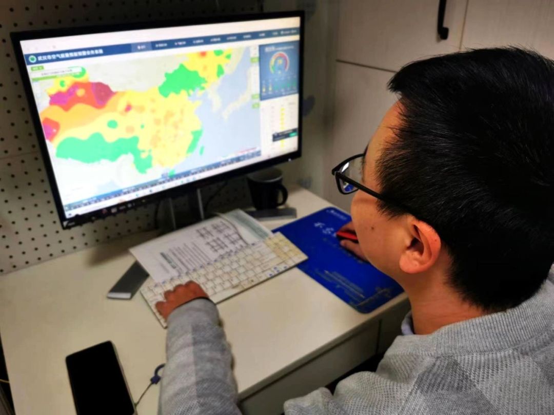 “北方区域的一个气团,携带有一些细颗粒物,有可能影响武汉。”26日上午,省生态环境厅武汉生态环境监测中心监测一室的环境空气质量值班员宫攀,通过查看天气云图和全国空气质量监测数据发现这一情况,他随即向上级值班员汇报。