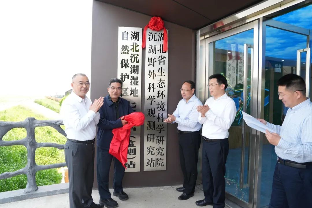 4月11日上午,湖北省生态环境科学研究院沉湖野外科学观测研究站(以下简称“沉湖观测站”)在蔡甸区沉湖国际湿地自然保护区正式揭牌成立。省生态环境厅党组成员、副厅长郭新明,武汉市生态环境局党组书记、局长张朝辉,省生态环境科学研究院(以下简称“省环科院”)党委书记、院长蔡俊雄,蔡甸区副区长胡图片等出席揭牌仪式。