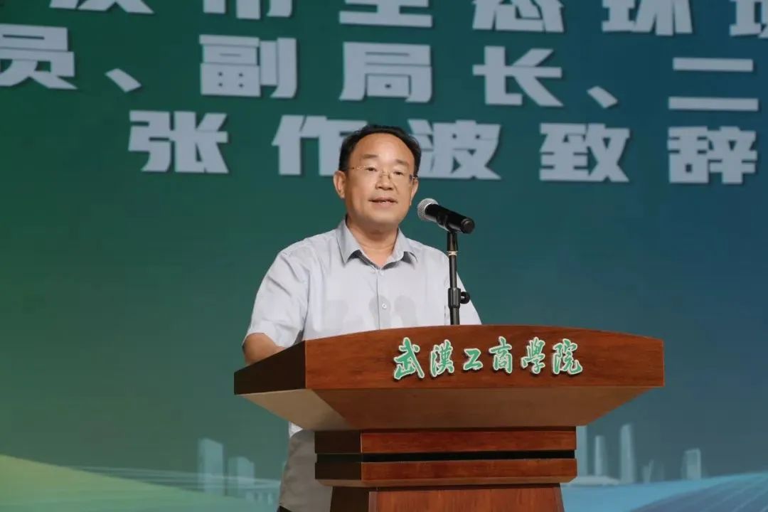 刘生元代表武汉工商学院致辞,他介绍,学校深入学习贯彻习近平生态文明思想,将生态文明理念贯穿育人全过程,通过激发产教融合动能、激活科技创新密码、激励学生行为养成等举措,着力培养建设美丽中国的应用型人才,并表示,学校将进一步加强与武汉市生态环保行业企业的交流合作,推动环保产业新技术、新知识进课堂、进教材、进讲坛、进实验室、进创新创业项目,积极开展生态环保各类实践活动,为美丽武汉、美丽湖北建设提供人才、智力支撑。