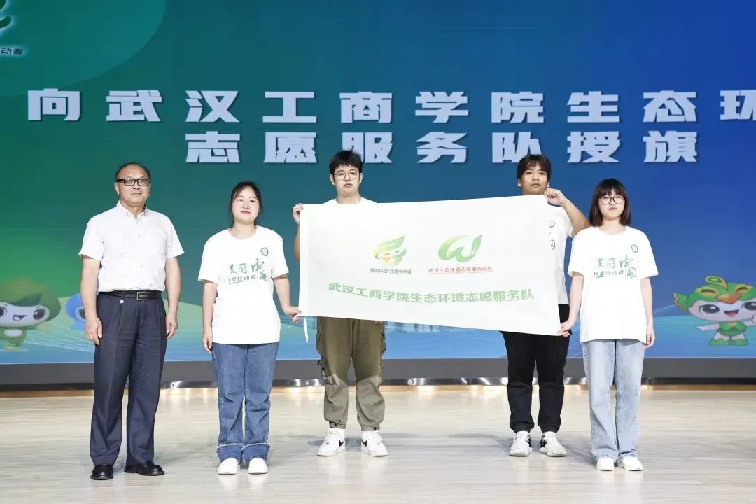 △武汉市生态环境宣教中心主任汪璞为武汉工商学院生态环境志愿服务队授旗