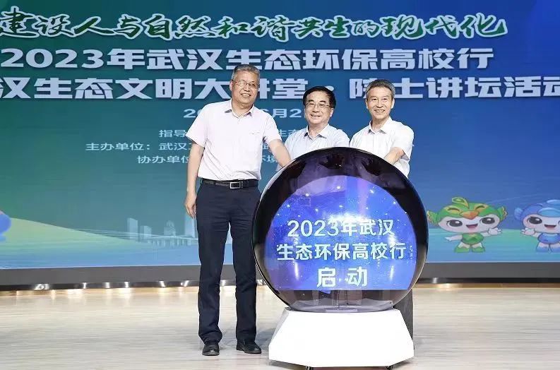 在完成交接仪式后,王焰新院士、任宪友副局长、孔建益校长共同启动“2023年武汉生态环保高校行”活动。