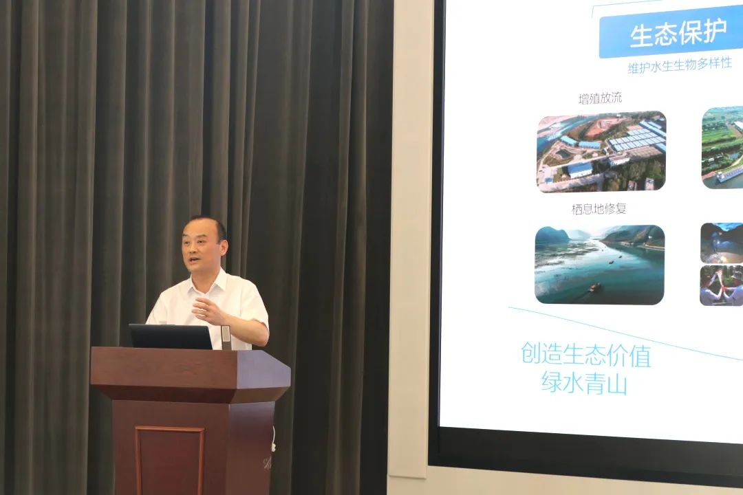 湖北省长江水生态保护研究院执行院长、武汉中科瑞华生态科技股份有限公司总裁杨琳开展“双碳战略下的水生生物多样性保护之道”专题讲座。