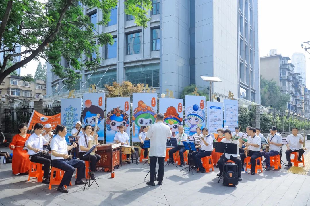 葡萄酒木箱做成琵琶,铁锹做成吉他,扁担做成小提琴、大提琴……街头,一群人拿着奇特“乐器”演奏《两山》新曲,优美的旋律吸引众多居民。