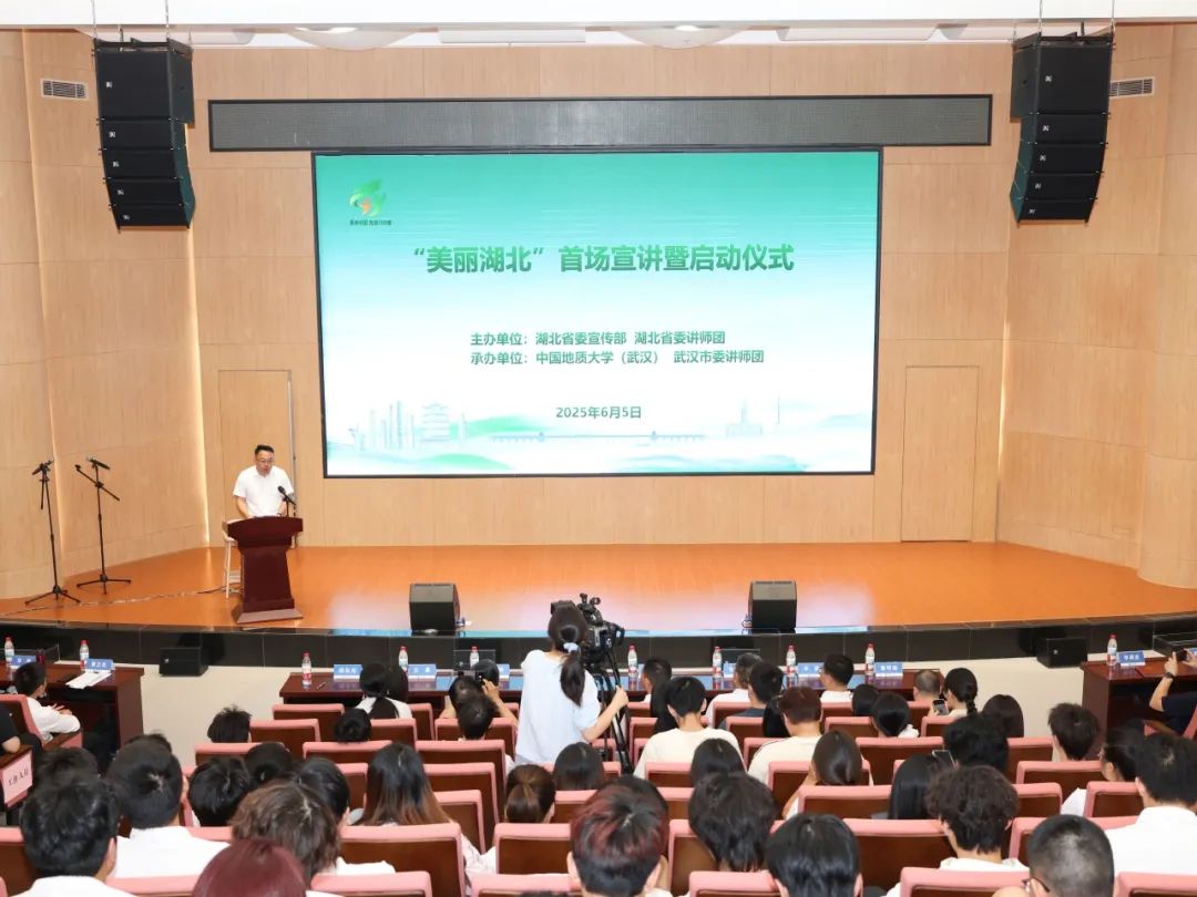 6月5日世界环境日当天,“美丽湖北”首场宣讲暨启动仪式在中国地质大学(武汉)举行。此次活动由湖北省委宣传部、省委讲师团共同主办,中国地质大学(武汉)、武汉市委讲师团承办,旨在加快建设人与自然和谐共生的美丽湖北,为支点建设构筑坚实生态环境支撑、凝聚奋进力量。