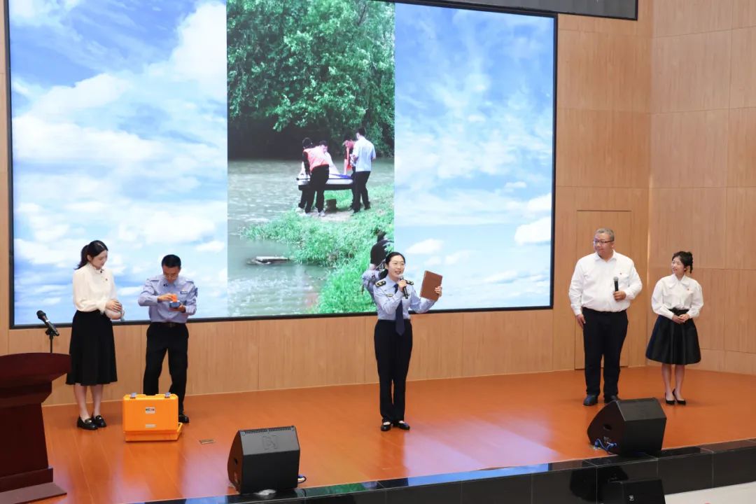 “七年前,总书记在武汉发出长江大保护动员令,如今江豚逐浪、水鸟翔集,长江母亲河正焕发新生……”武汉市生态环境局宣讲队以声光融合的散文诗剧,从智慧监测、排污口整治、绿色科技、生态科普多个角度,进行了一场情景式宣讲,讲述以江豚之名、守护长江之美,让长江武汉段“江豚再现、水质跃升”的生态蝶变,观众直观感受到长江大保护战略实施以来的成效。