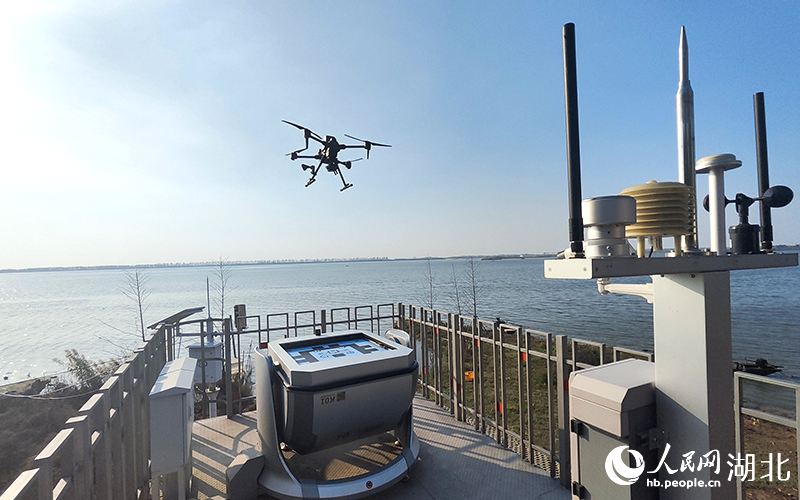 在武汉市江夏区斧头湖枯竹海水域的岸边,一座精致小巧的机库缓缓开启,一架挂载着微型四光相机的无人机腾空而起,沿着预设航线在天际划出一道优美的弧线。8分钟时间,无人机飞行了近6000米,在固定点位精准拍摄下39张照片。