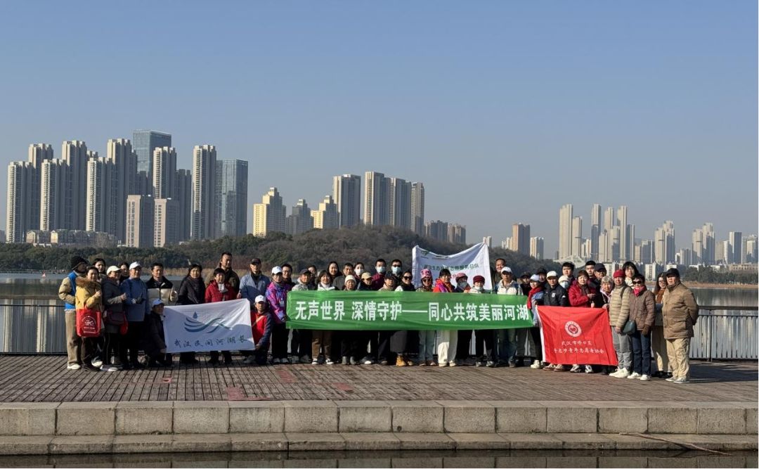 冬日暖阳初绽,月湖沉浸在静谧而明亮的晨光中,几只水鸟掠过,留下一圈圈轻柔涟漪。在这幅动人的画卷里,“无声世界,深情守护——同心共筑美丽河湖”志愿服务活动正悄然进行。市生态环境局汉阳区分局携手武汉生态环境志愿服务总队、武汉爱我百湖志愿者协会、武汉地铁集团志愿服务队,与20名听障志愿者并肩前行,在月湖之畔书写了一曲生态守护与人文关怀交织的温情赞歌。