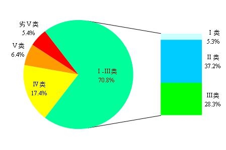2019年6月,1940个国家地表水评价断面中,水质优良(Ⅰ-Ⅲ类)断面比例为70.8%,同比上升0.1个百分点;劣Ⅴ类断面比例为5.4%,同比下降0.3个百分点。主要污染指标为化学需氧量、总磷和高锰酸盐指数。