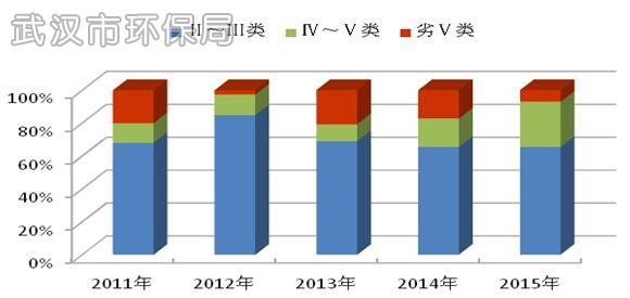 图16 2011~2015年武汉市河流断面水质类别比例图