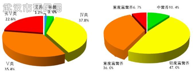 图18 2015年武汉市湖泊水质类别和营养状态比例图
