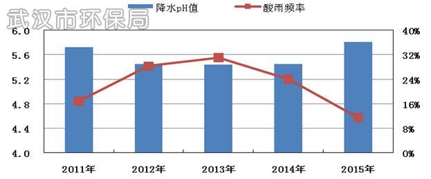 图11 2011~2015年武汉市降水pH值和酸雨频率图