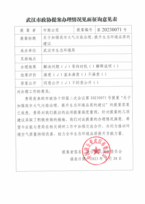 贵单位提出的“关于加强我市大气污染治理,提升生态环境品质的建议”的提案收悉,现答复如下: