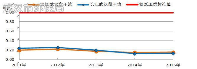 图15 2011年~2015年长江、汉江武汉段干流氨氮浓度图