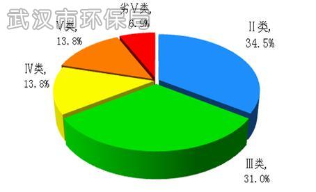 图13 2015年武汉市主要河流(港)断面水质类别比例图