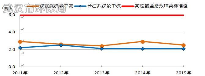 图14 2011年~2015年长江、汉江武汉段干流高锰酸盐指数浓度图