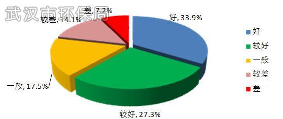 2015年武汉市环境空气质量优良天数为192天,较2014年增加10天;优良率为52.6%,较2014年上升2.7个百分点。其中优33天、良159天、轻度污染124天、中度污染30天、重度污染16天、严重污染3天;重度及以上污染天数较2014年减少16天。