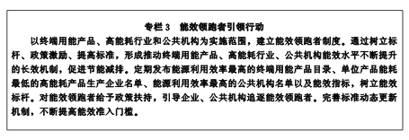 促进节能低碳工业产品生产和消费。落实终端用能产品能效领跑者制度,在办公设备、商用设备、照明产品、工业设备及交通运输工具等产品领域,加大高效节能产品的技术研发、宣传和推广力度。实施低碳产品标准、标识和认证制度,鼓励低碳产品生产和消费。