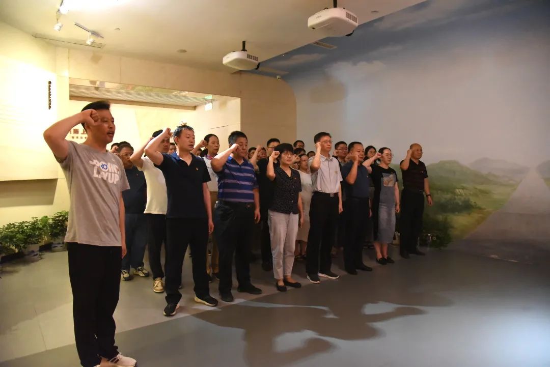 参观伊始,70余名党员举起右拳,重温入党誓词,以坚定有力、铿锵嘹亮的宣誓声,表达不忘初心、牢记使命的信念和决心。