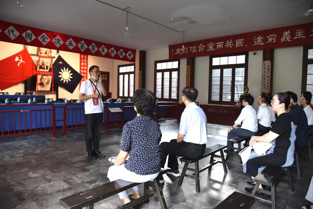 在中共五大会址纪念馆,参观人员一行学习了中共五大召开的背景、会议筹备情况、会议形成的成果以及带来的深远影响,参观了会场复原展厅。