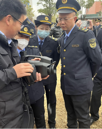 此次排练的新式设备,从最新的无人机到红外热像仪、自动烟尘/气测试仪,都让各位执法大队的选手们眼前一亮,立马上手进行设备的体验和了解。